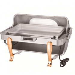 Sold out - KGM6801-1 - Oblong chafing dish with gilt legs and show window, 680x460x420