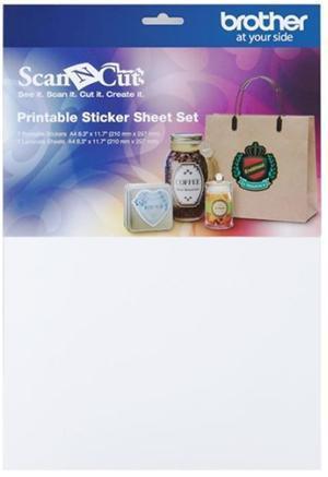 Printable Sticker Sheet Set, This is a consumable item to create printable sticker projects for use with Brother ScanNCut machine and the Printable Sticker Kit (both sold separately). Includes: 7 Printable Stickers A4 8.3" x 11.7" (210 mm x 297 mm); 7 Laminate Sheets A4 8.3" x 11.7" (210 mm x 297 mm). Do not use with a printer model incompatible with label sheets.