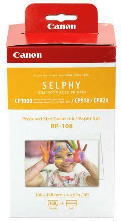 Canon RP-108 Color Ink/Paper Set; Compatible with new SELPHY printers only: CP910/CP1000/CP1200/CP1300 (will not work with CP800/CP810/CP900).
