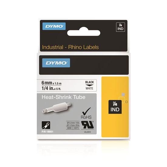 DYMO Genuine Rhino Industrial Labels- Heat Shrink Tube 6mm Black on White.Made of industrial grade polyolefine and featuring a 3:1 heat shrink ratio. RoHS compliant. Temperature Rating -19C to +135C.