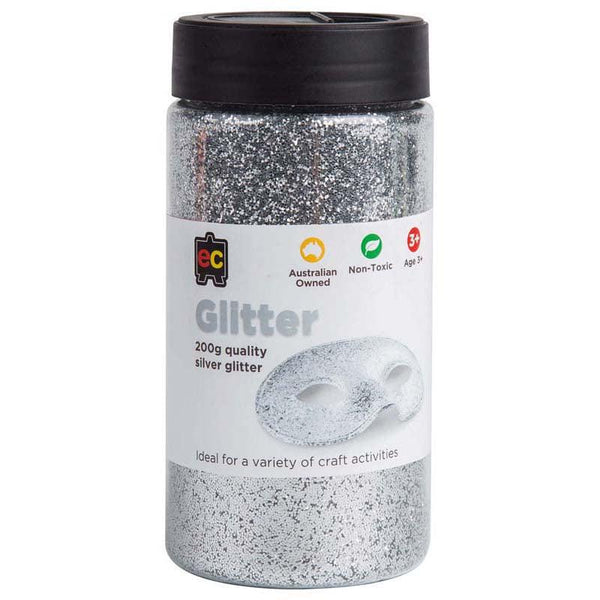 Add a touch of sparkle to all your favourite craft projects with craft glitter! Craft glitter will bring dazzle to paper, fabric, plastic, metal, wood, pottery and foam. Packaged in easy-to-use plastic containers that will allow you to shake or pour glitter onto your artwork. Available in 7 colours in 200g jars. Suitable for use at home, school and kindergarten.