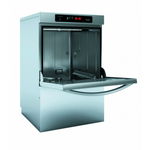 E-VO CONCEPT glass washer with 350x350 mm basket (CO-352) and 400x400 mm basket (CO-402) with double wall rigid door. Dish service height up to 220 mm (CO-352) and 270 mm (CO-402). Constant water consumption of 2 litres per cycle for the rinse with a mains pressure of 2 bar. New optimised hydraulic EFFI-WASH system, with stainless steel wash arms and 0.26 kW pump, guaranteeing a top quality effective and efficient wash with an optimum Sinner circle balance. It also has a built-in rinse aid dispenser and drainage pump (B) and detergent dispenser (DD) fitted at factory or supplied in kit form It has adjustable feet to permit levelling according to the needs of the establishment. Magnetic door open sensor. Electronical control panel making it easy to use.