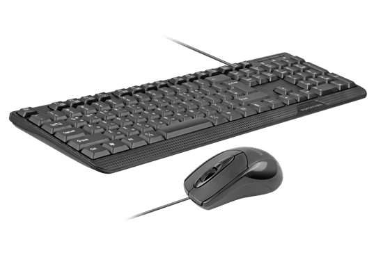 PROMATE Ergonomic Wired USB Mouse & Keyboard Combo. Advanced tactile keys. Plug & play. 800/1200dpi mouse. Compatible with Windows & Apple MAC. Colour Black