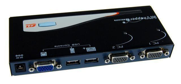 REXTRON 2 Port USB KVM Switch. Share 1x USB k/b/USB Mouse/Video with 2x PCs. Supplied with 2x 1.8m all in one cables.